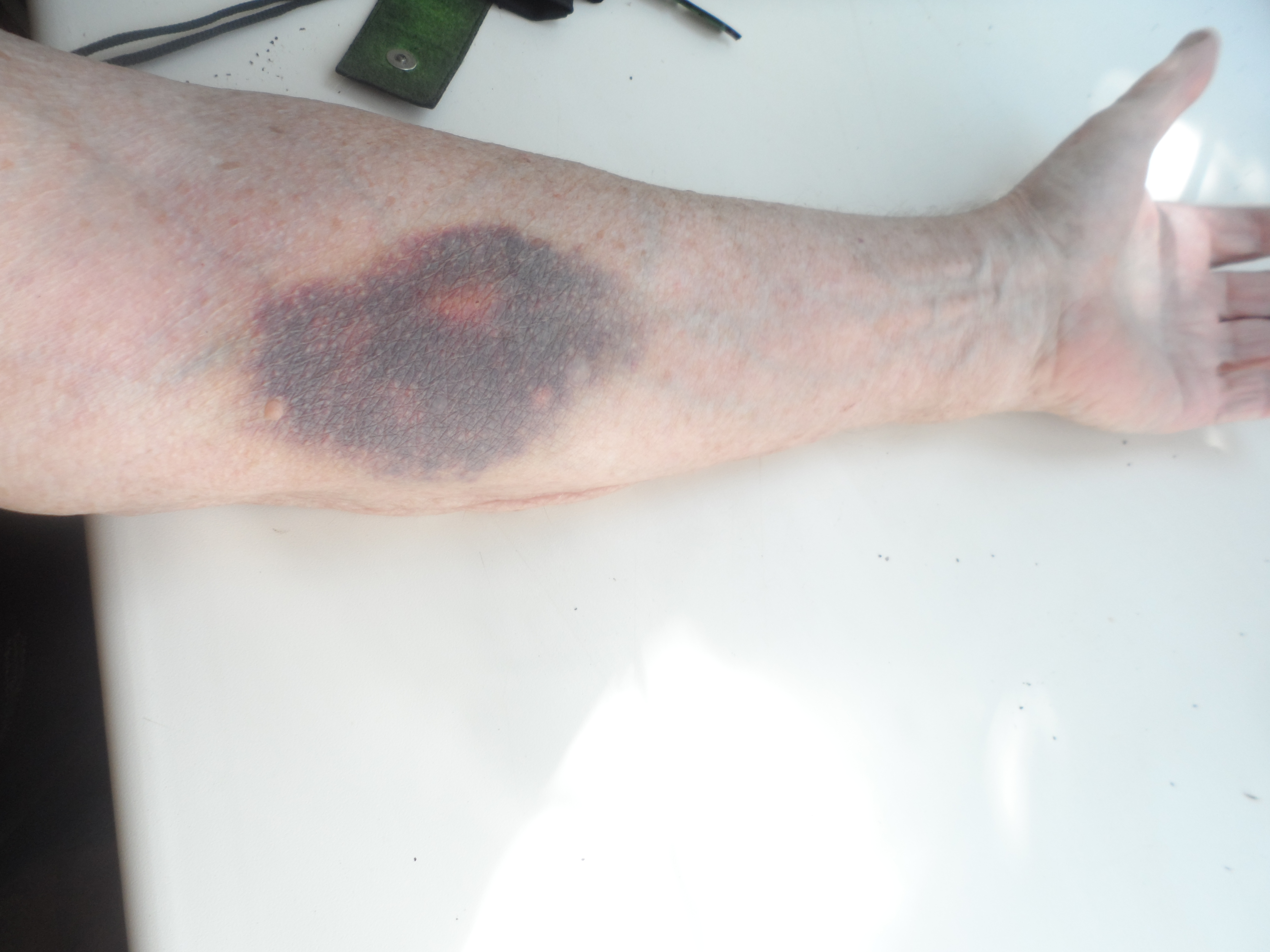 Рис. 2. Гематома, образовавшаяся в течение нескольких часов после процедуры наполнения организма свободными электронами.